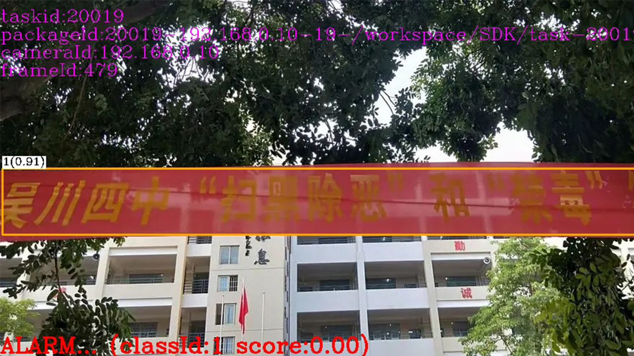 横幅识别算法是检测是否有横幅标语,检测到则立即报警。
