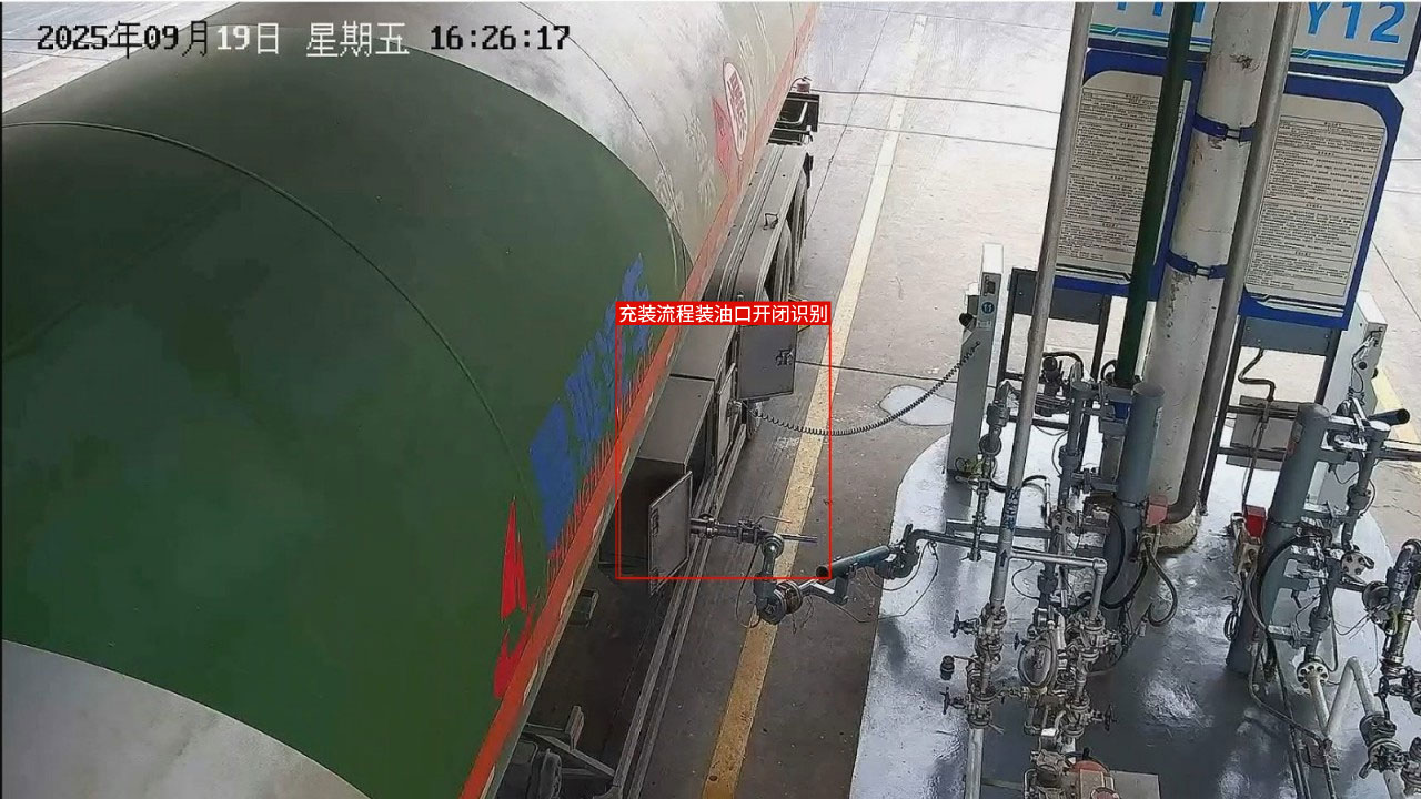 充装流程装油口开闭识别算法运用 AI 视频分析技术,智能识别石化充装作业流程中,监控装油口的开启或关闭状态,可作为作业流程监管判断依据。