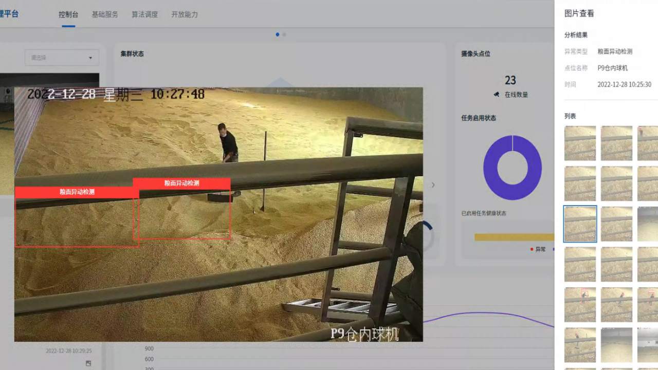 立即咨询粮面异动检测是指对视频画面中的粮面进行异动(粮食堆积状态和凹陷两种状态)检测,检测到这种状态则输出告警信息。
