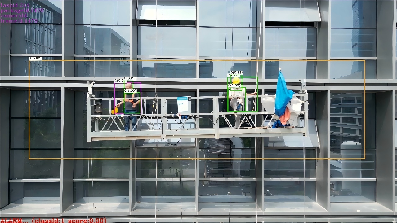 通过对吊篮使用状态和人员防护措施的联合识别,防止违规空载运行或人员未规范穿戴防护装备作业,提升高空作业安全管理的自动化水平。
