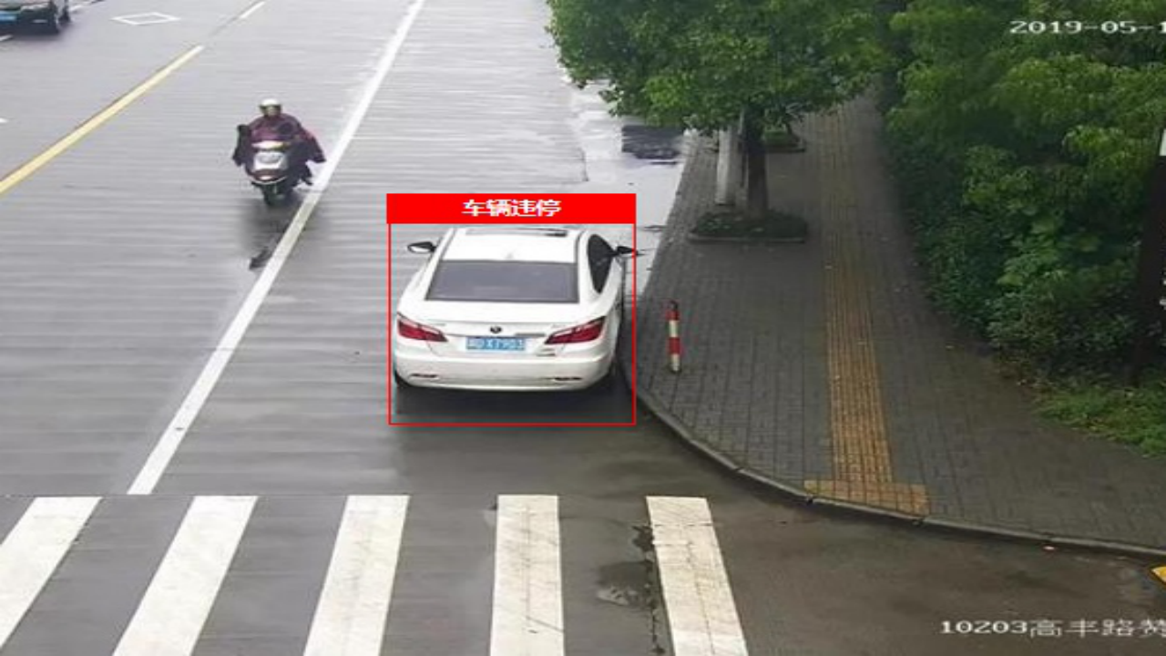 车辆违停算法可根据预先划定好的区域判定是否有车辆违规停车,若检测到车辆违停,则立即报警。