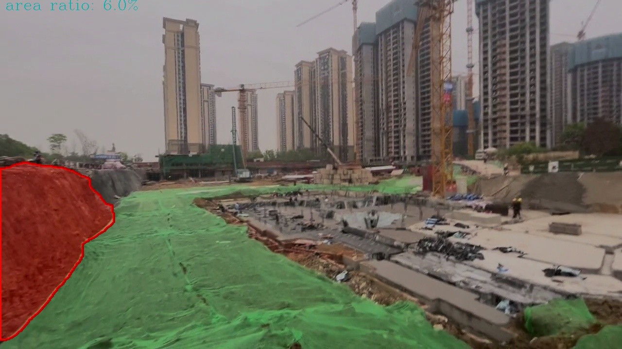 Bare soil recognition algorithm is to automatically identify the bare soil pile in the operation area. If the soil pile is not covered with green dust net, it will immediately give alarm.